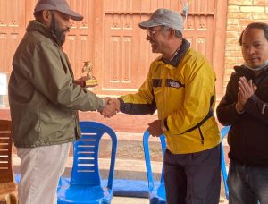 कार्यक्रमका सभापतिद्वारा प्रमुख अतिथि कर्माचार्यलाई मायाकाे चिनाे स्वरूप त्वा: देवा:(पानस) प्रदान गर्नुभएको थियोे भने रक्तदान कार्यक्रम उप-समितिका सदस्य उत्तमकृष्ण श्रेष्ठलाई प्रमुख प्रेमसागर कर्माचार्यद्वारा रक्त संकलन थैली हस्तान्तरण गरि रक्तदान गर्न आग्रह गर्दै कार्यक्रमकाे बिधिव समापन गर्नुभएको थियोे ।