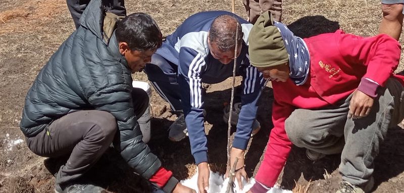 नेकपाद्वारा जुम्लामा सामूहिक स्याउखेती, महासचिव विप्लव बिरुवा रोप्दै